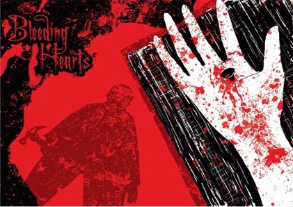 So...Spiros D and myself before the begining of the festival. We spent a couple of hours putting the postcards we made for the first 100 Bleeding Hearts issues into red envellopes and sticking them into the books. We really aren't as happy as we seem.
